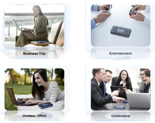 个人随行场景:可应用在各类户外移动办公应用,比如:SOHO移动办公、商务差旅、户外直播、无人机巡检回传等;